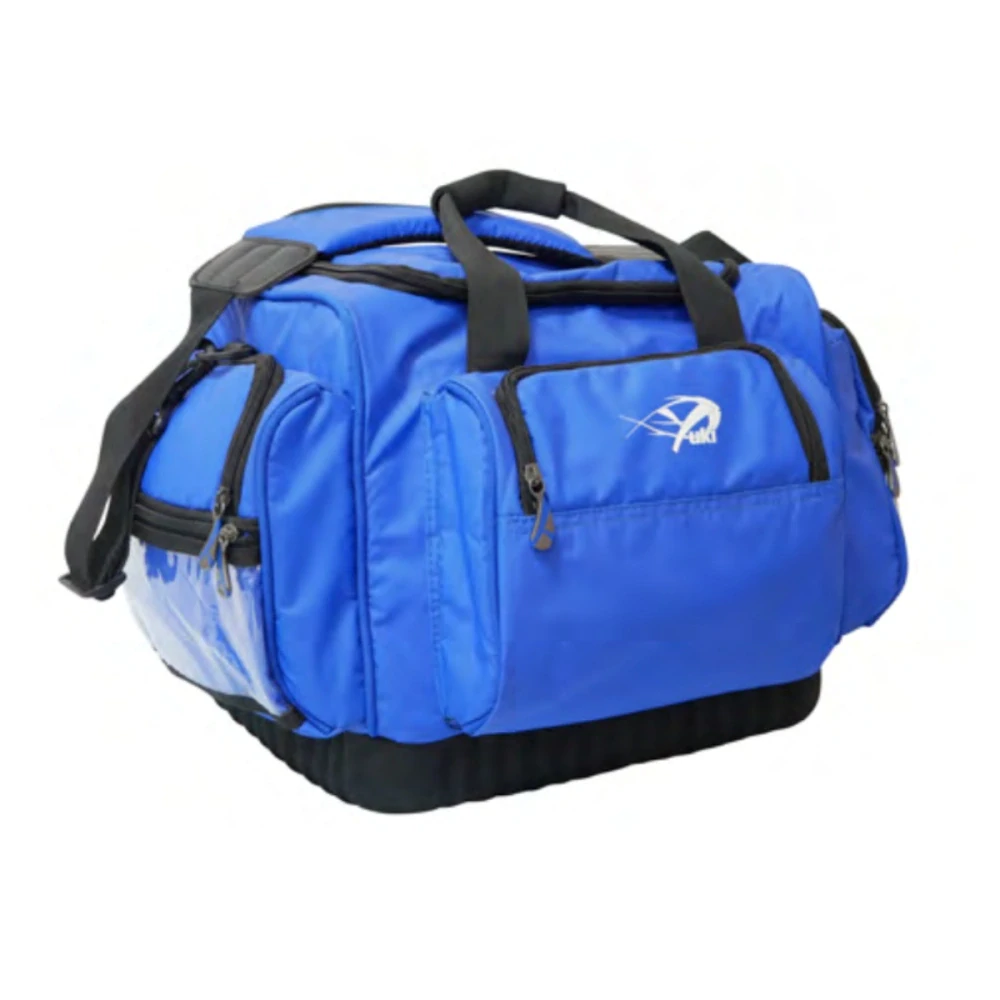 Kompaktní, pevná rybářská taška s dvojitým vyztužením uvnitř z voděodolného materiálu a pevným dnem.